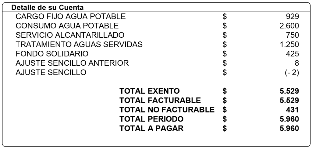 CARGO FIJO AGUA POTABLE: Costo básico de emitir y recaudar.